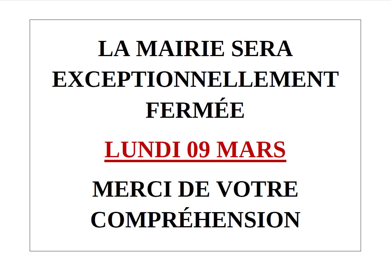 Fermeture Accueil Mairie