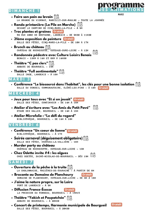 Programme des animations du territoire de mars