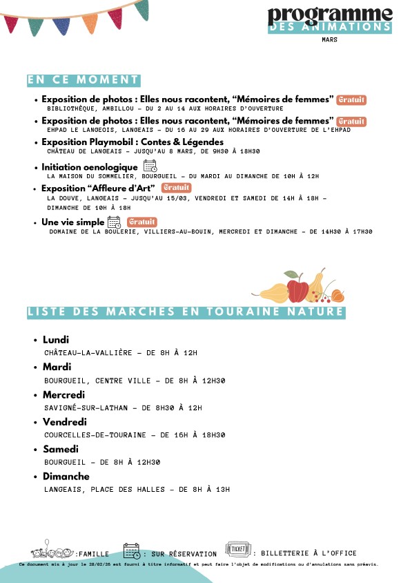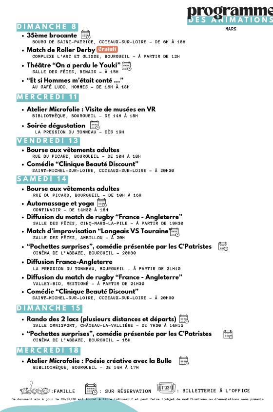 Programme des animations du territoire de mars